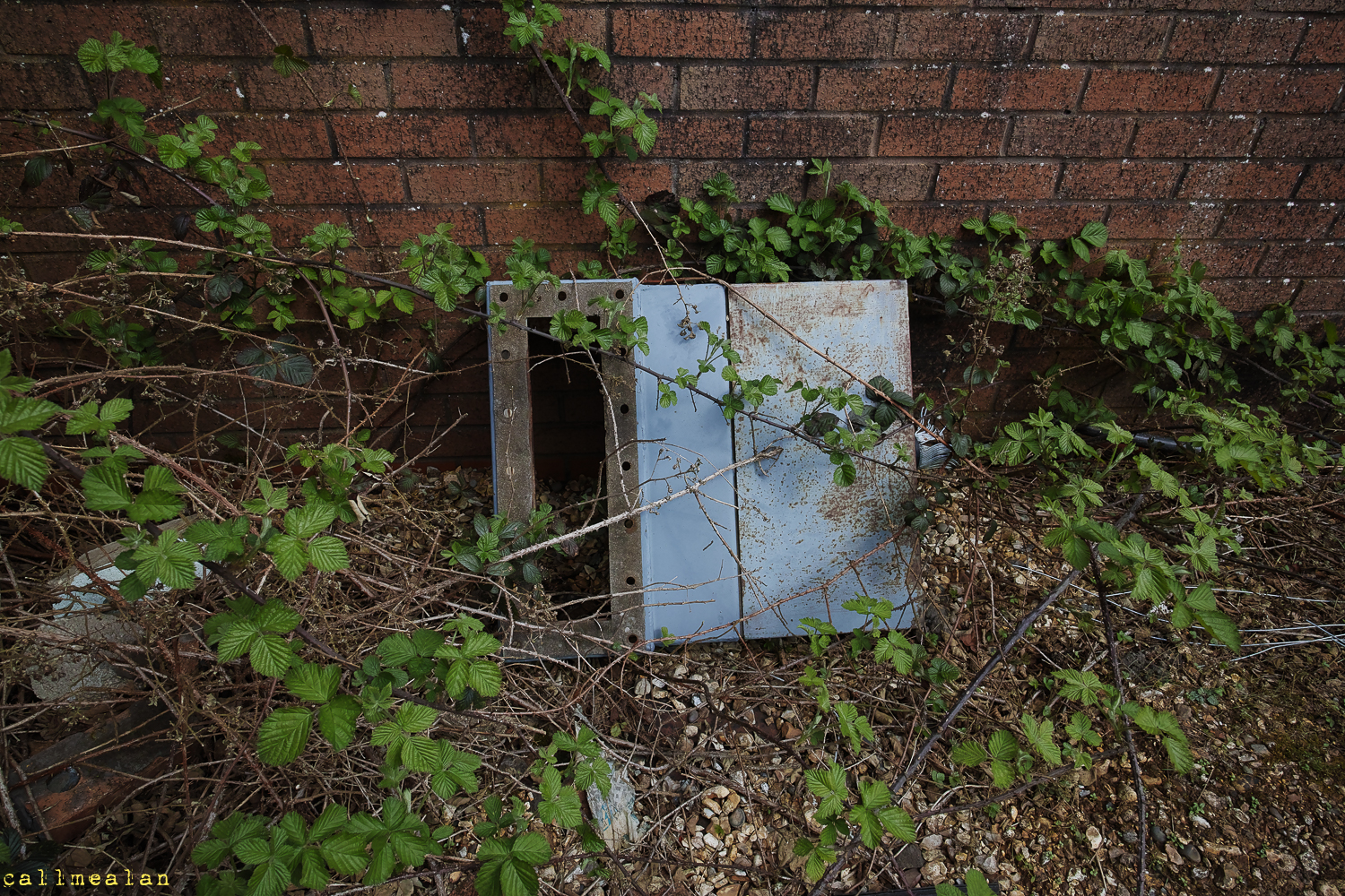 Once again, it is a mystery as to why the airbase demolishers opted to leave this installation undemolished. However, those who are without scruple or respect, and whose knuckles quite probably drag along the ground when they walk, have chosen to do their own demolition, and have taken things apart in the substation on the search for valuable scrap copper. In addition, these morons have bashed a hole in the wall in order to penetrate the pump building. I do wish people would leave valuable and interesting reminders of the past alone. Oh well.