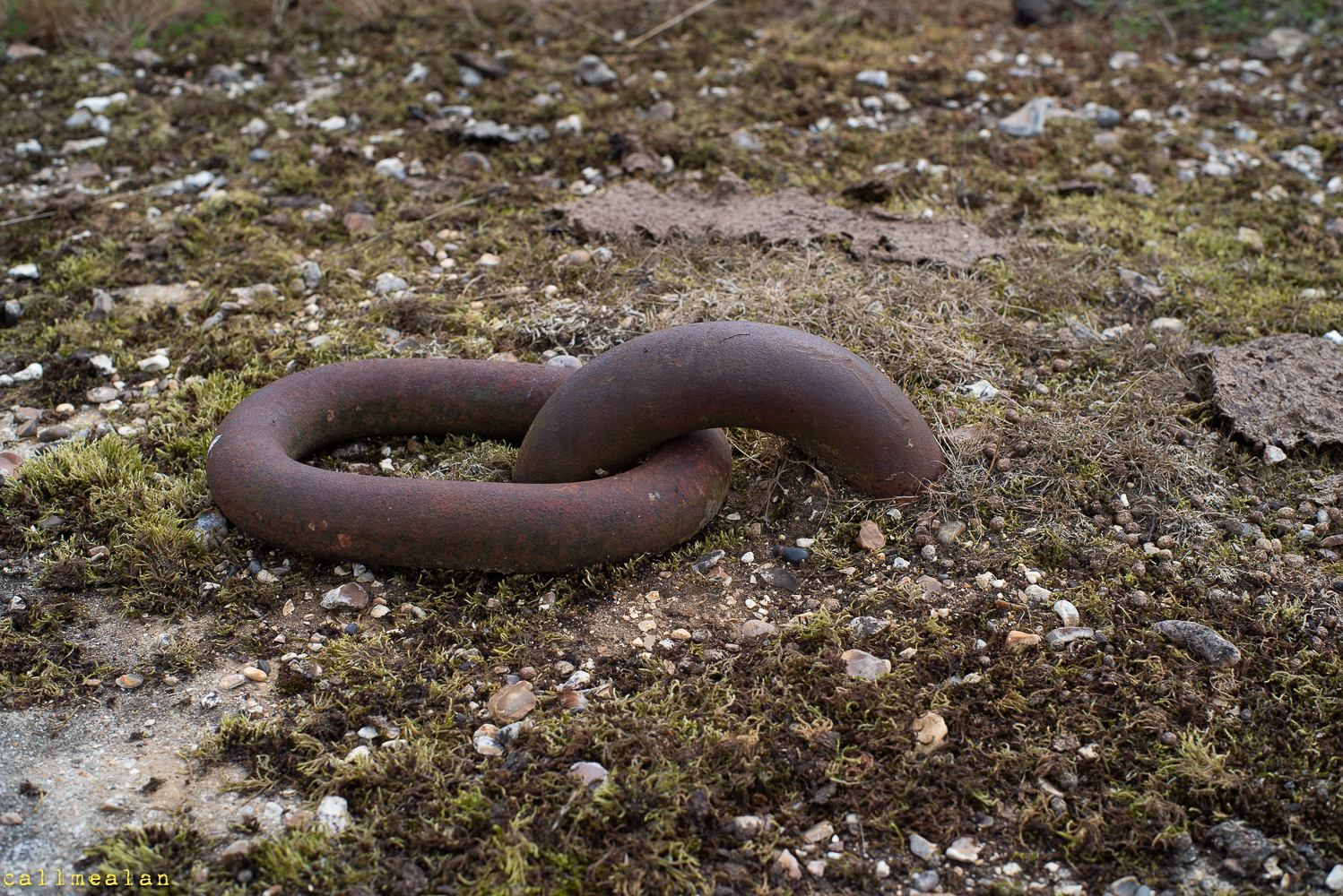 No, not aerial people, but the guy rope securing rings. These are situated atop just about the highest point of the airfield, and well away from flight paths. The four massive concrete blocks each hold an embedded iron ring, to which is attached another ring. In the aerial picture can be seen the central point between the four guying positions which will have borne the antenna mast itself. Nothing remains of the central point.